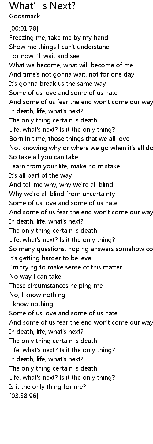 | [02:00.40] | In death, life, what's next? |