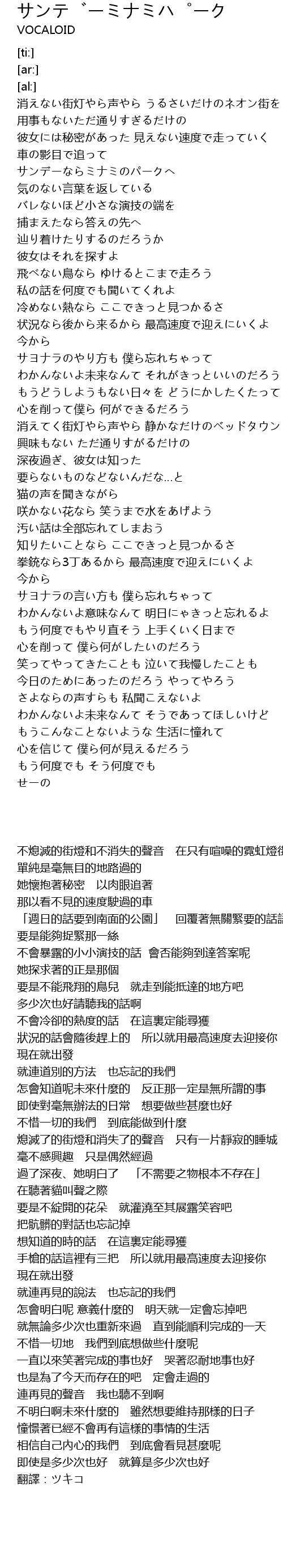 | [00:36.10] | サンデーならミナミのパークへ 気のない言葉を返している |