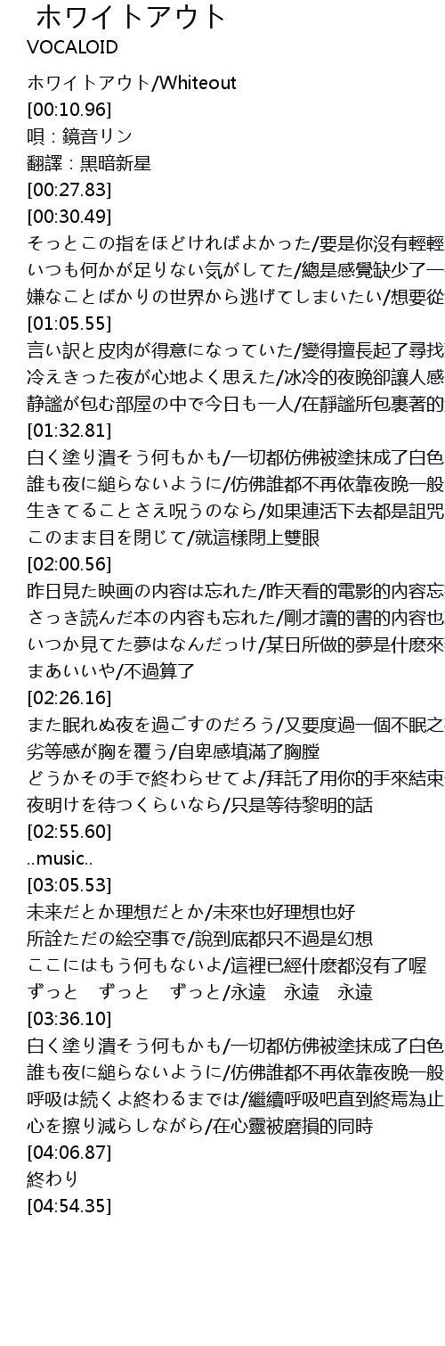 | [00:00.76] | ホワイトアウト/Whiteout |