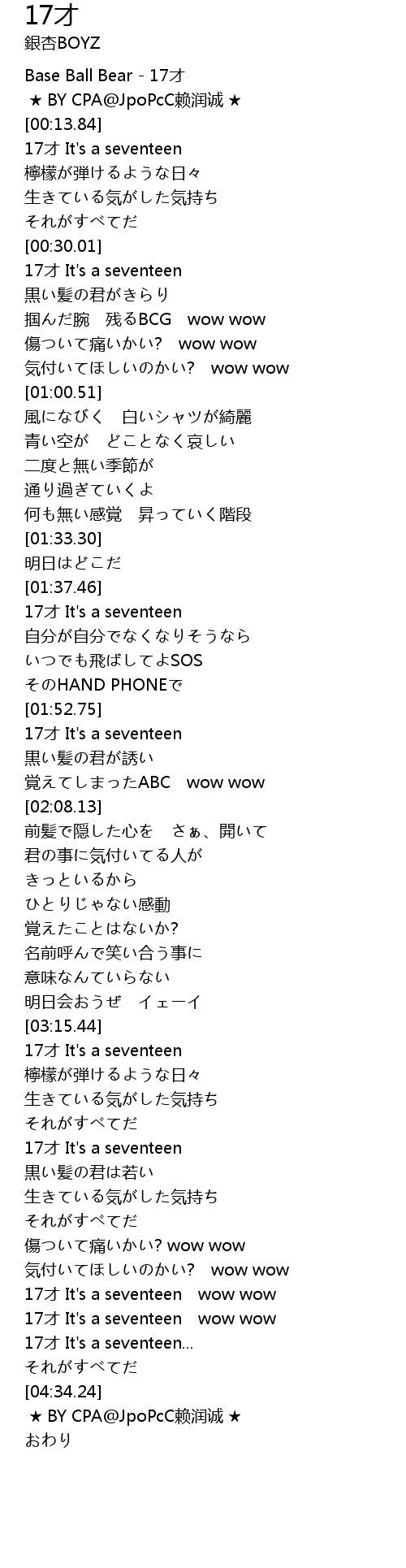 | [04:02.78] | 17才 It's a seventeen wow wow |