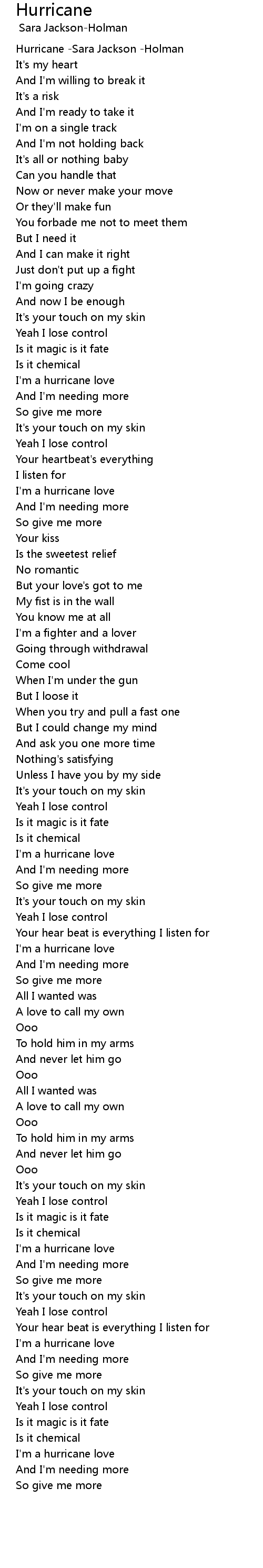 Hurricane -Sara Jackson -Holman |