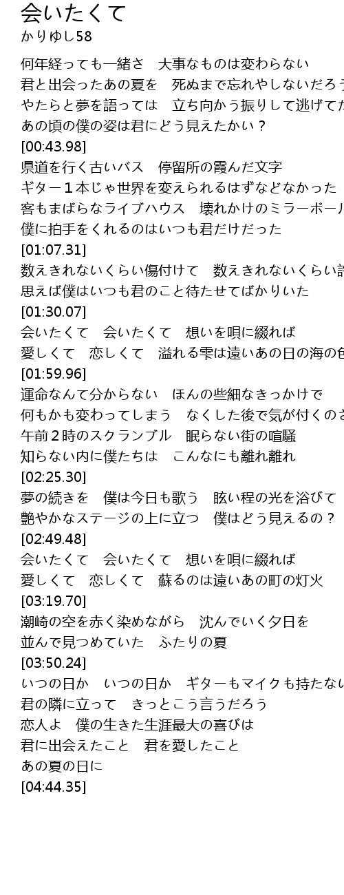 | [02:51.90] | 会いたくて 会いたくて 想いを唄に綴れば |
