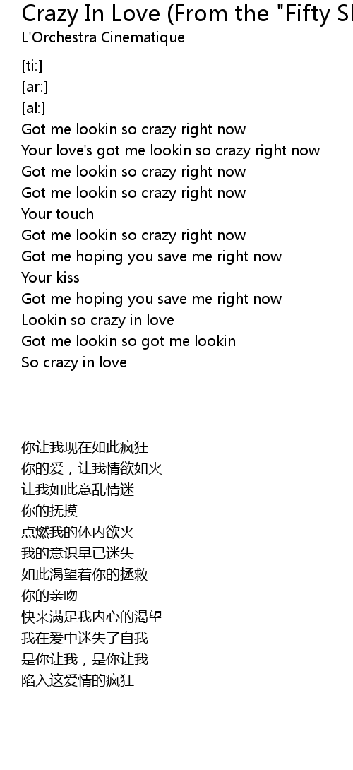 | [01:03.97] | Your love's got me lookin so crazy right now |