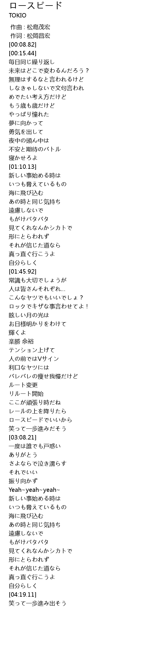 | [02:58.30] | ロースピードでいいから |