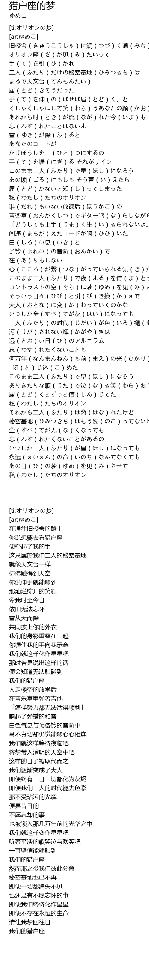 | [01:32.722] | このまま二人(ふたり)で星(ほし)になろう |