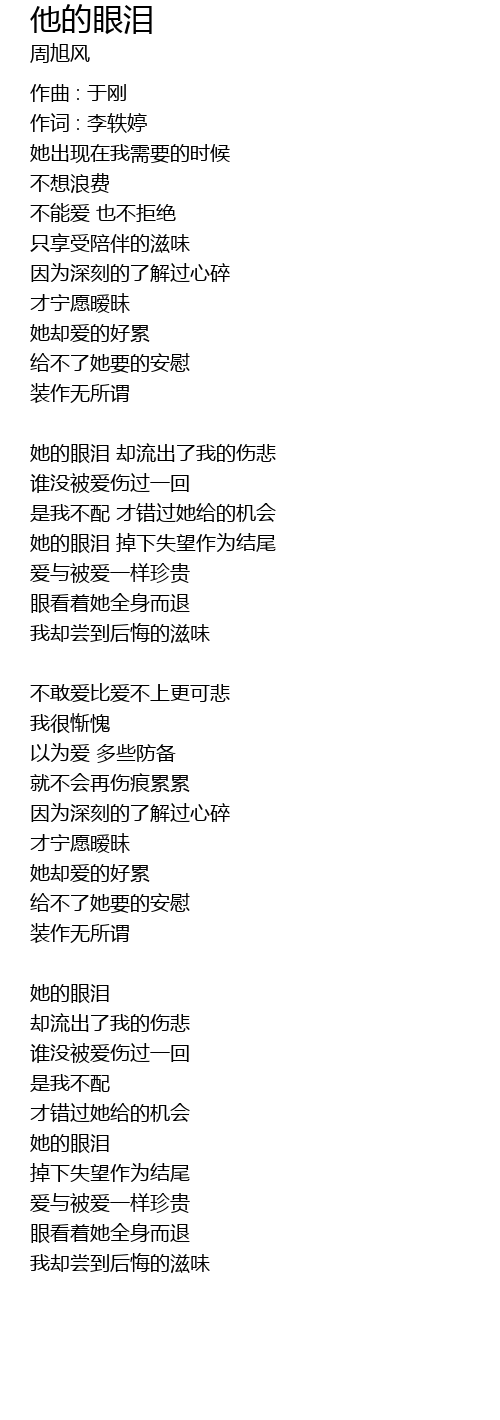 | tā de yǎn lèi què liú chū le wǒ de shāng bēi | |