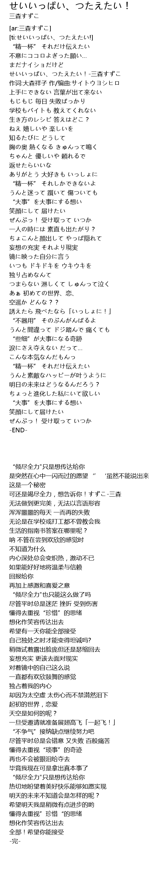 | [00:14.89] | せいいっぱい、つたえたい!-三森すずこ |