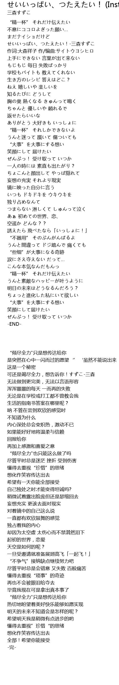 | [00:14.89] | せいいっぱい、つたえたい!-三森すずこ |