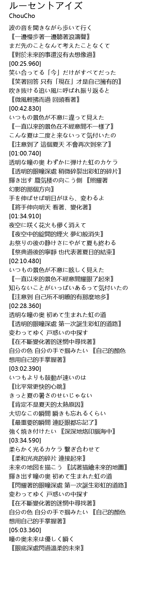 | [05:03.830] | 瞳の奥未来は優しく瞬く 〖眼底深處閃過溫柔的未來〗 |