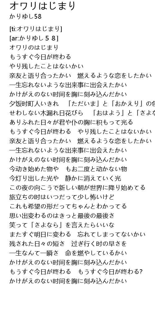 | [05:21.470] | もうすぐ今日が终わる もうすぐ今日が终わる? |