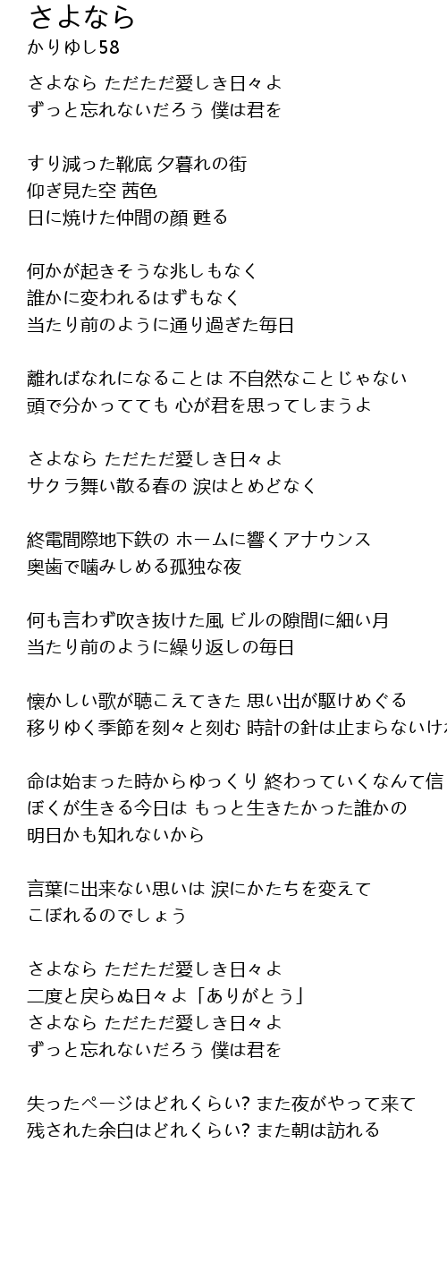 | 二度と戻らぬ日々よ「ありがとう」 | |