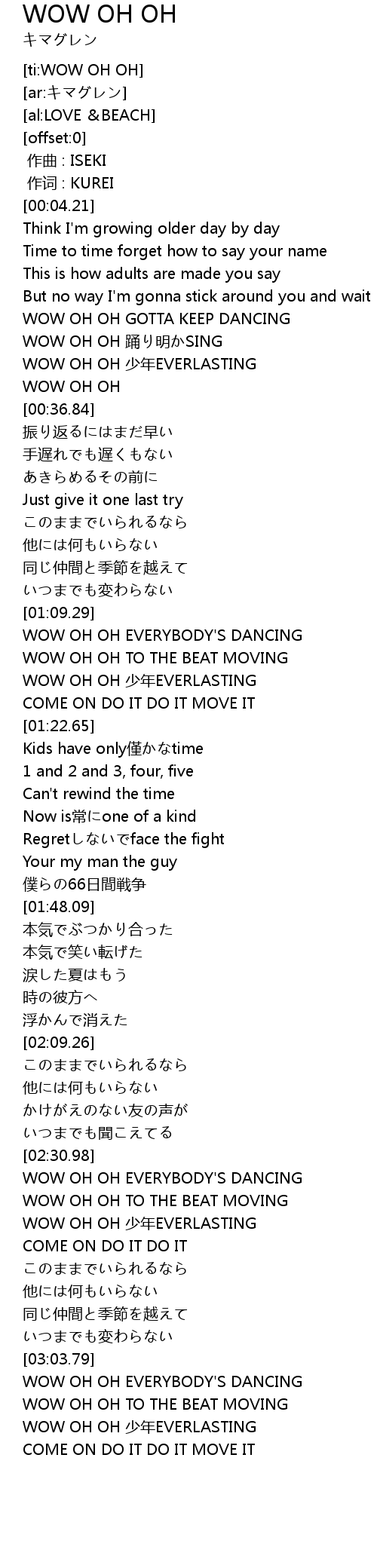 | [03:08.24] | WOW OH OH TO THE BEAT MOVING |