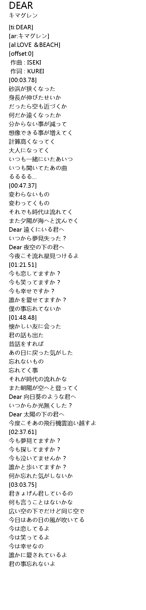 | [02:29.51] | 今度こそあの飛行機雲追い越すよ |