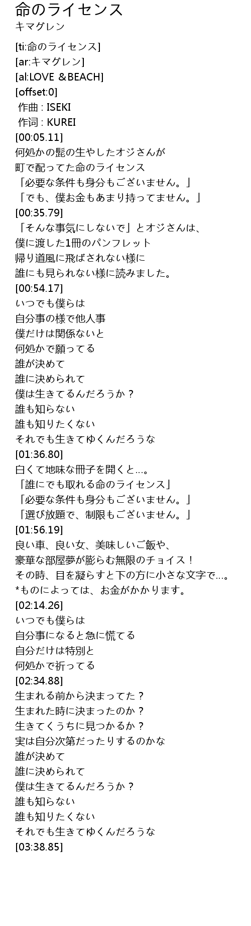 | [01:43.55] | 「誰にでも取れる命のライセンス」 |