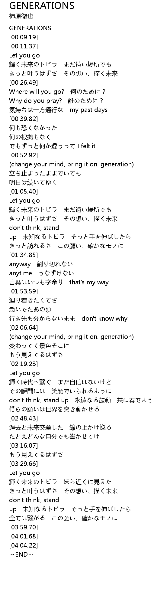 | [00:00.00] | GENERATIONS |