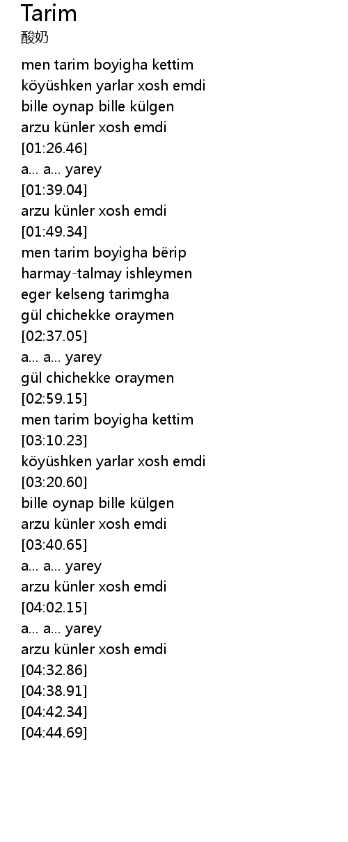 | [03:11.66] | köyüshken yarlar xosh emdi |