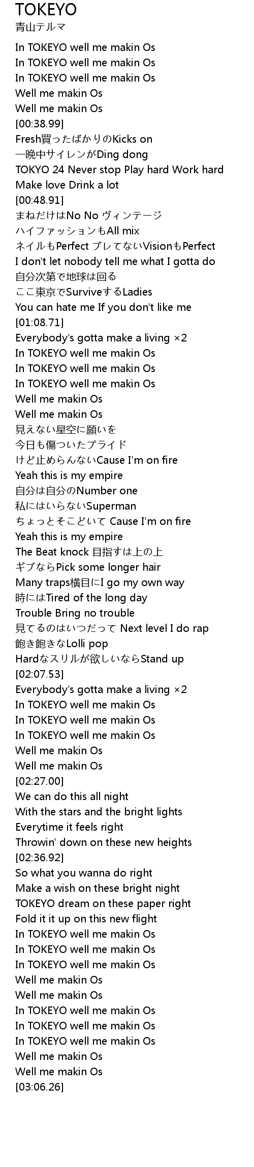 | [02:58.46] | In TOKEYO well me makin Os |
