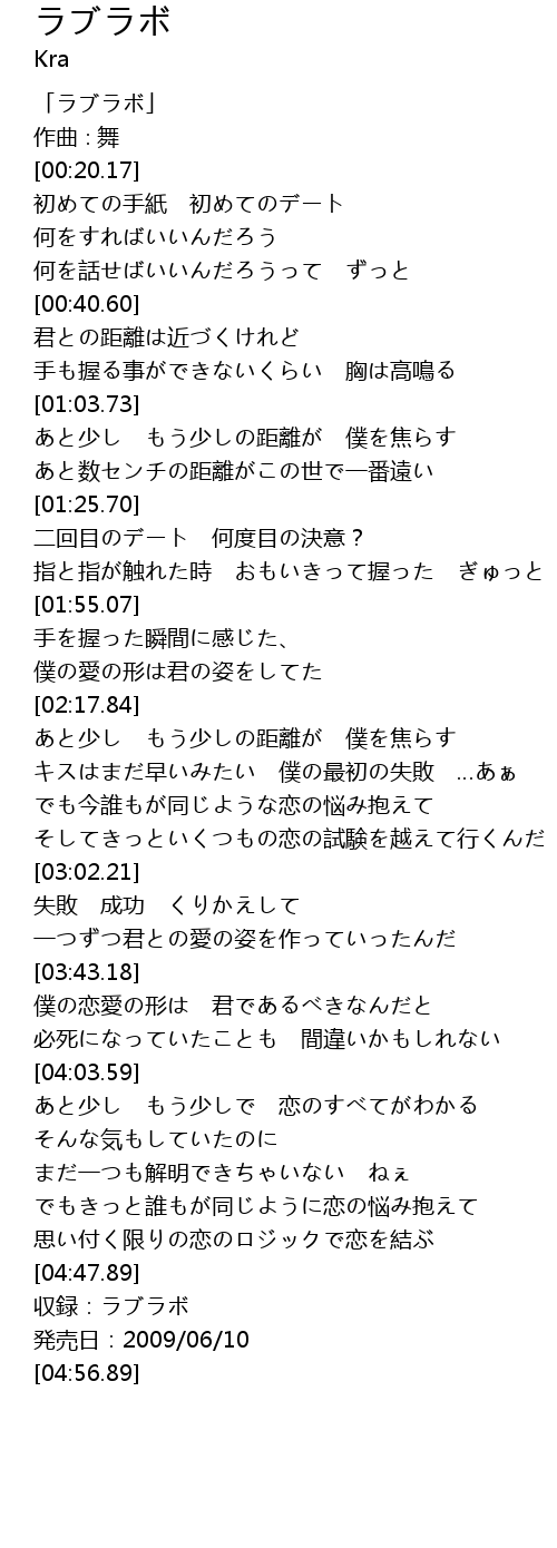 | [00:22.17] | 初めての手紙 初めてのデート |
