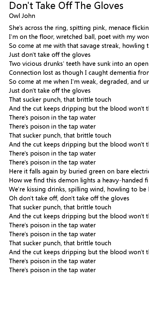 | Oh don't take off, don't take off the gloves | |