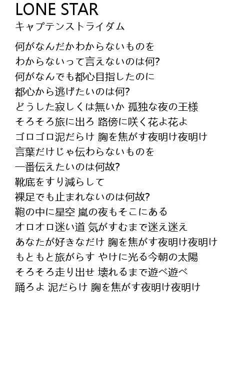 | 踊ろよ 泥だらけ 胸を焦がす夜明け夜明け |