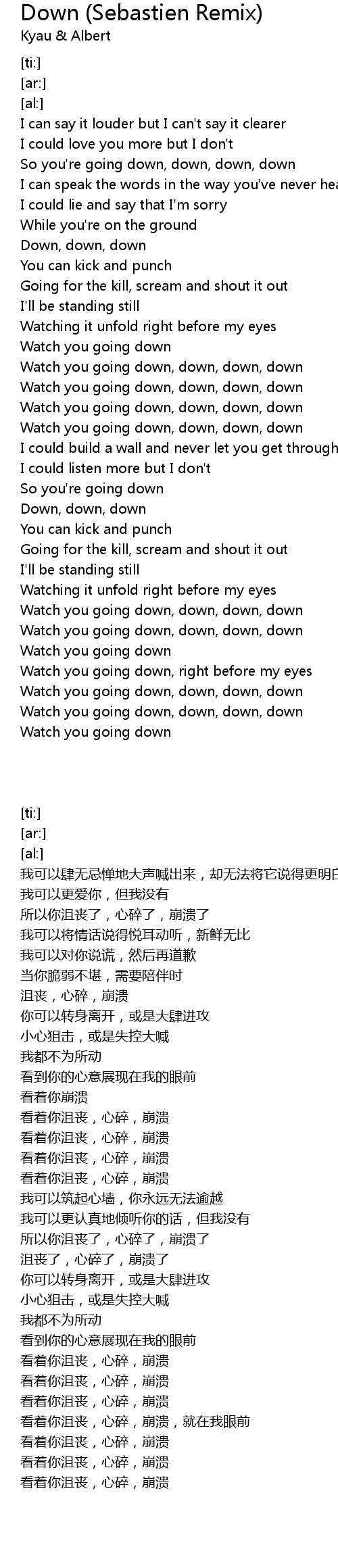 Watch you going down, down, down, down |
