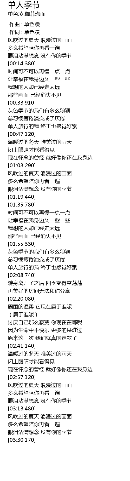 | [03:23.870] | 眼泪沾满想念 没有你的季节 |