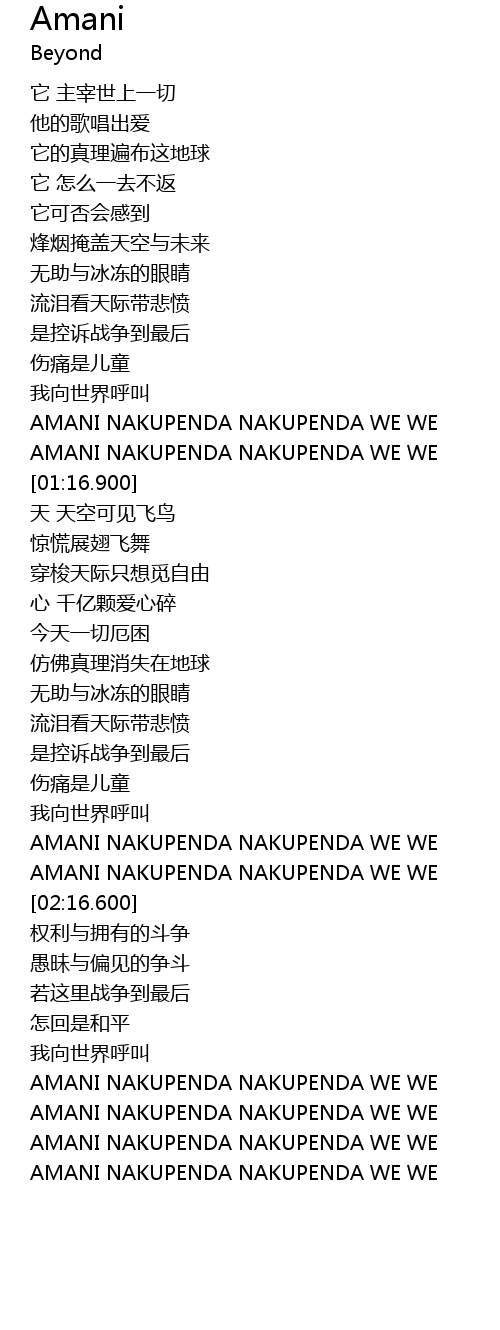 | [03:31.600] | AMANI NAKUPENDA NAKUPENDA WE WE |