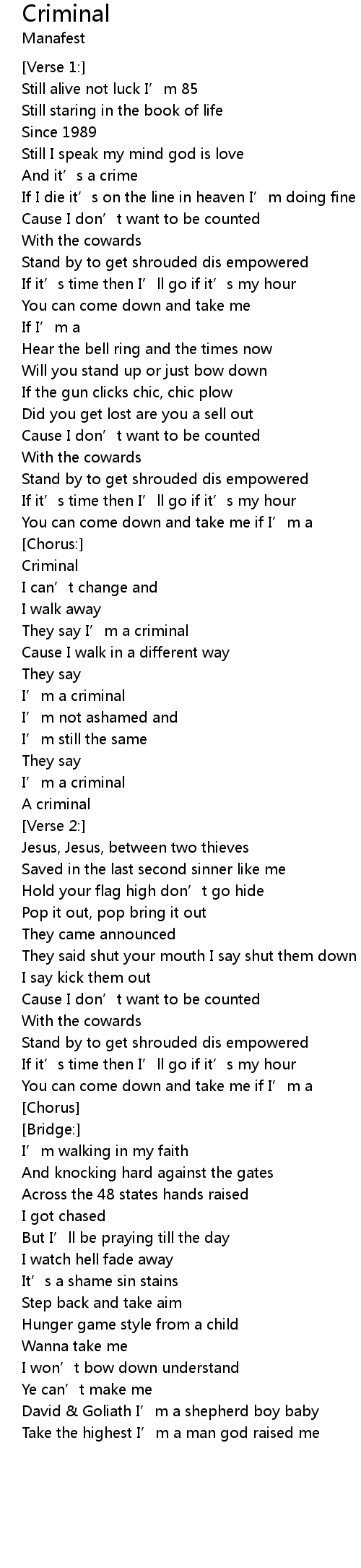 | They say I' m a criminal | |