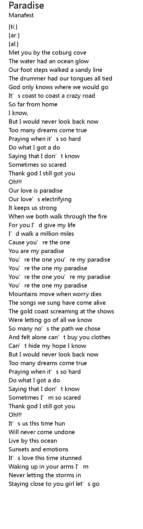 | [01:09.22] | You are my paradise |