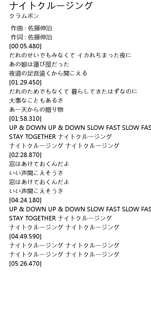 | [05:10.220] | ナイトクルージング ナイトクルージング |
