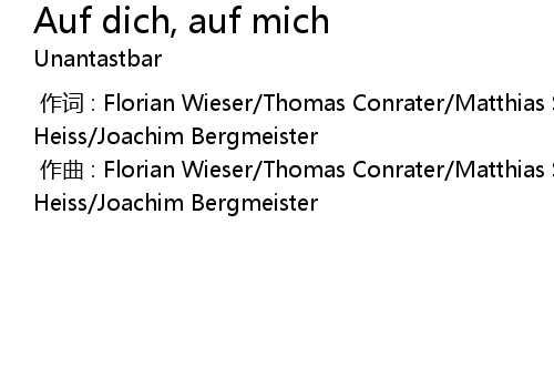 | [00:00.000] | 作曲 : Florian Wieser/Thomas Conrater/Matthias Speranza/Christian Heiss/Joachim Bergmeister |