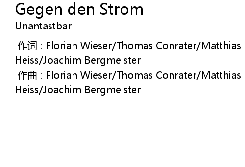 | [00:00.000] | 作曲 : Florian Wieser/Thomas Conrater/Matthias Speranza/Christian Heiss/Joachim Bergmeister |