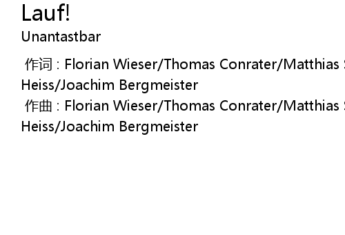 | [00:00.000] | 作曲 : Florian Wieser/Thomas Conrater/Matthias Speranza/Christian Heiss/Joachim Bergmeister |
