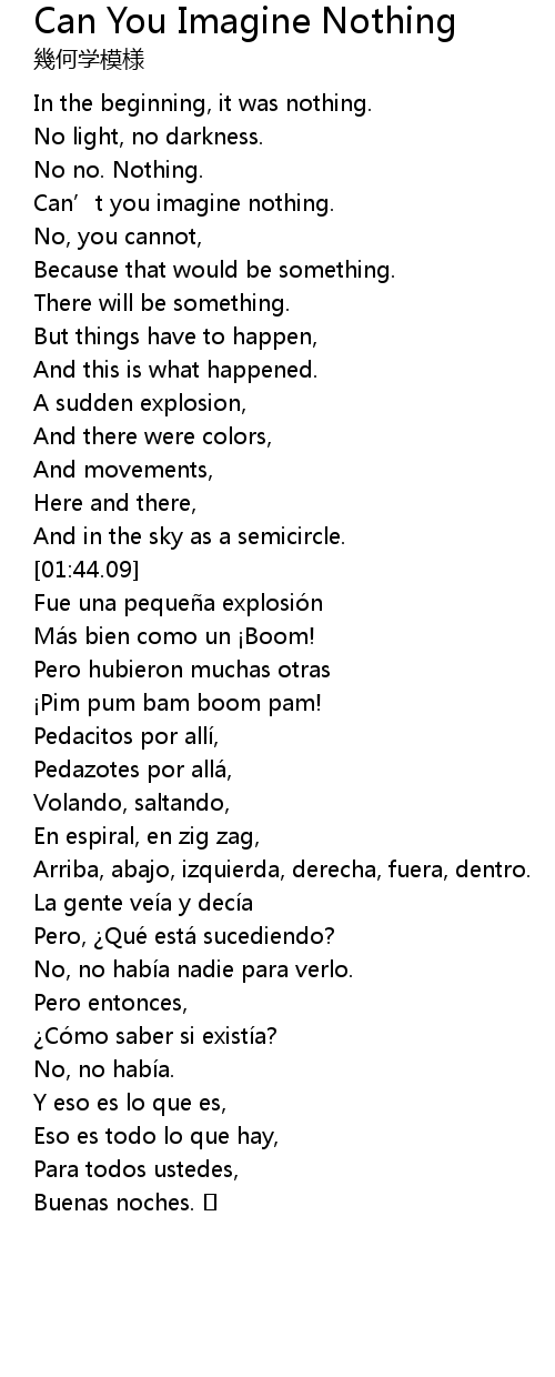 | Song | Can You Imagine Nothing |