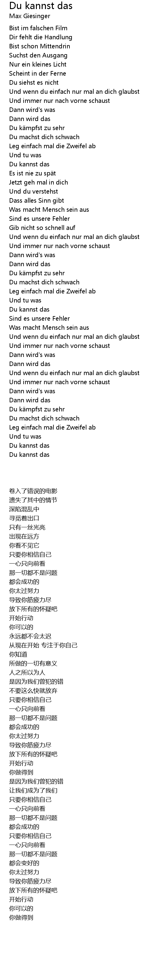| [00:42.809] | Und wenn du einfach nur mal an dich glaubst |