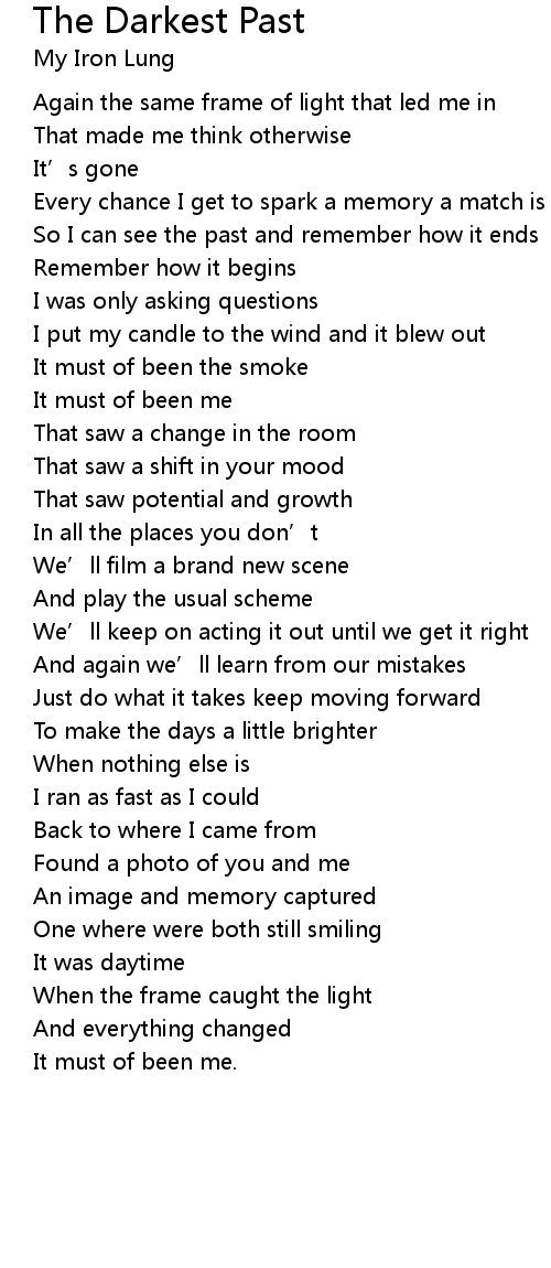 | Every chance I get to spark a memory a match is lit to a wick | |