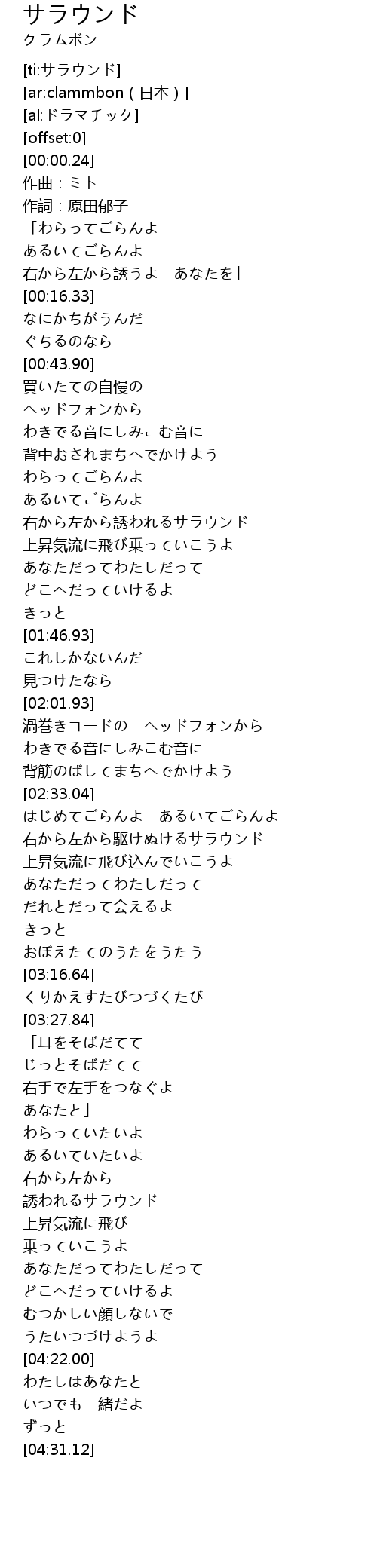 | [02:41.09] | 右から左から駆けぬけるサラウンド |