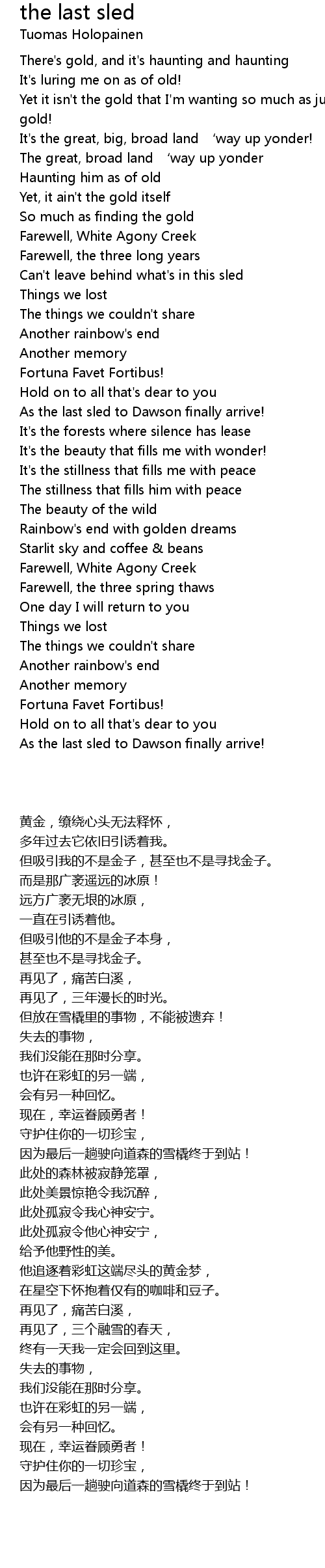 | [02:33.000] | As the last sled to Dawson finally arrive! |