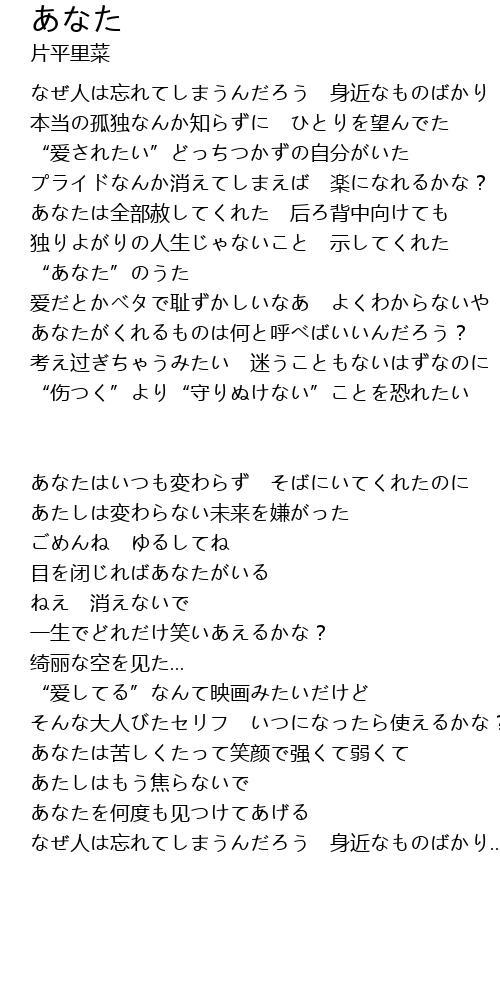 | あなたはいつも変わらず そばにいてくれたのに | |