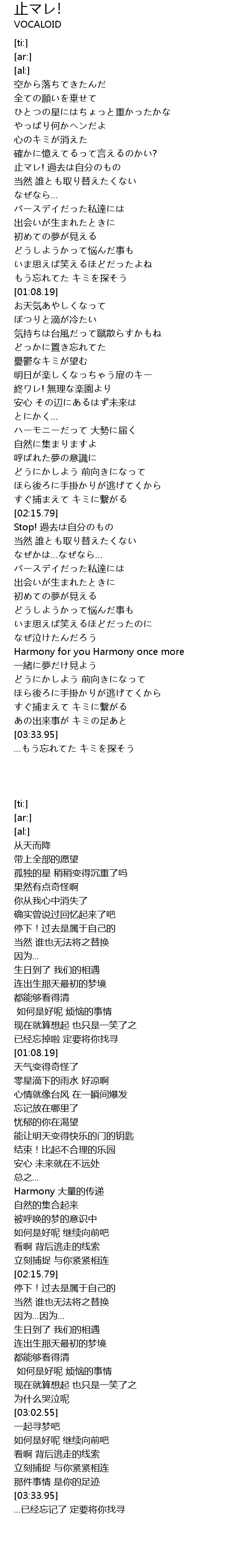 | [00:32.77] | 止マレ! 過去は自分のもの |