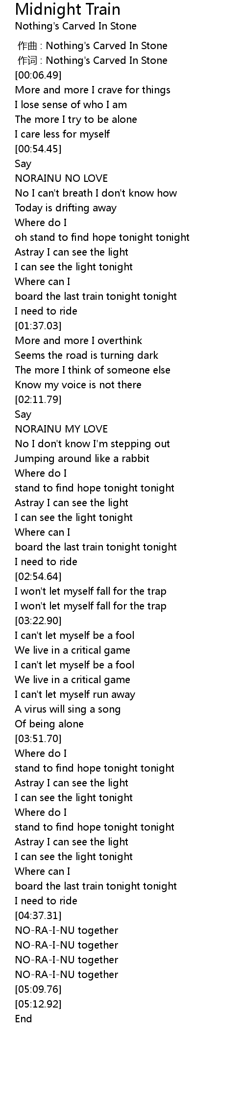 | [05:01.90] | NORAINU together |