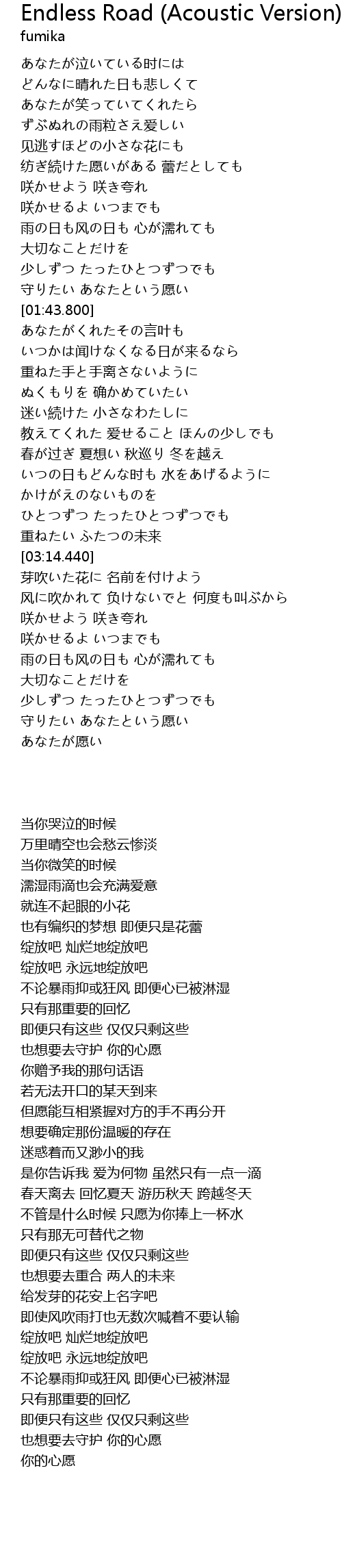 | [02:01.380] | いつかは闻けなくなる日が来るなら |