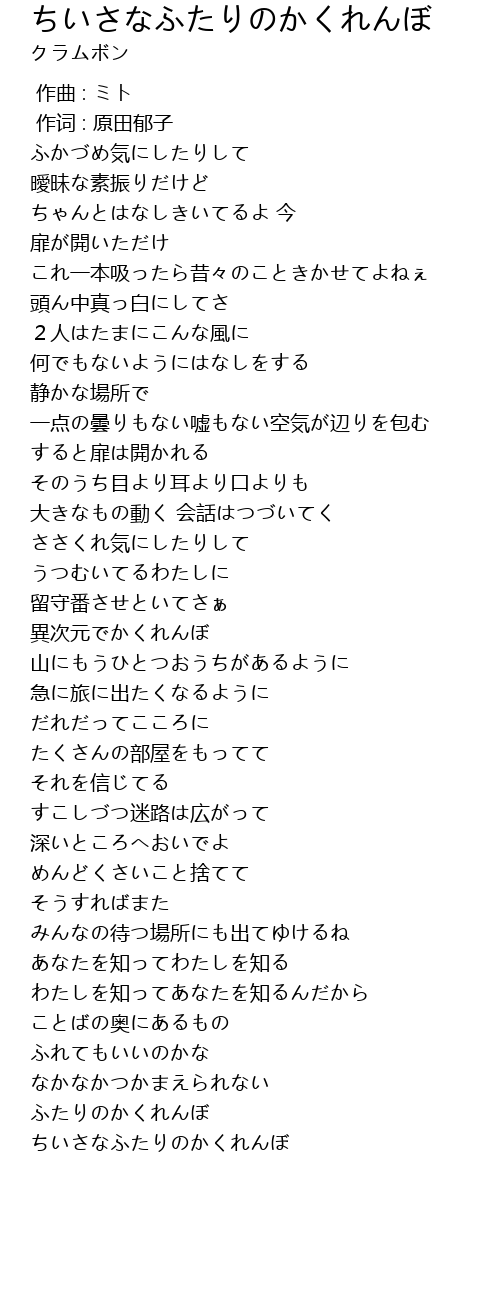 | [03:18.42] | ちいさなふたりのかくれんぼ |