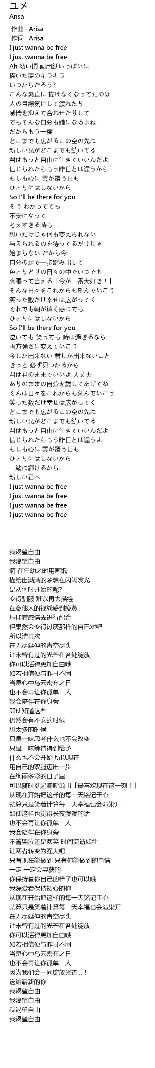 | [00:02.85] | I just wanna be free |