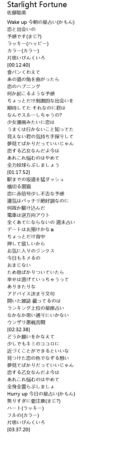 | [03:26.29] | Hurry up 今日の星占い(かもん) |