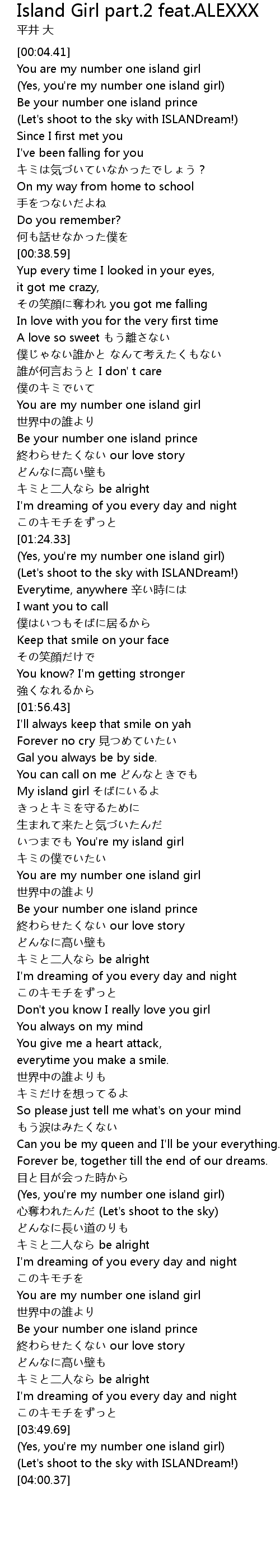 | [00:08.74] | (Yes, you're my number one island girl) |