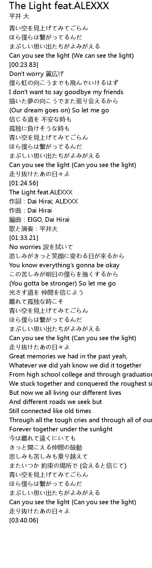| [02:24.18] | Can you see the light (Can you see the light) |
