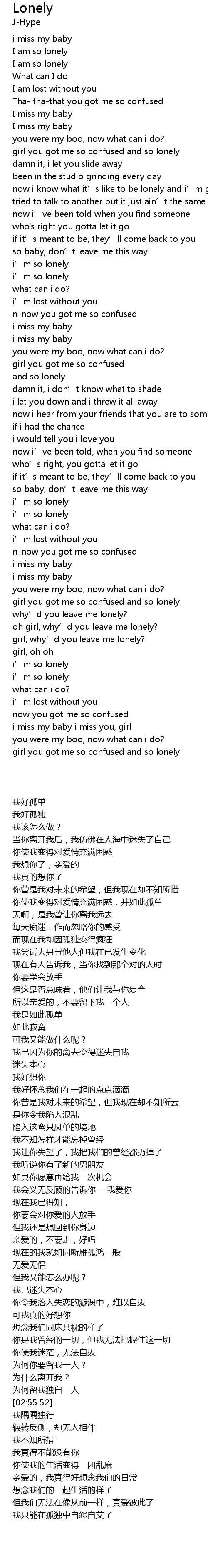 | [02:39.66] | girl you got me so confused and so lonely |