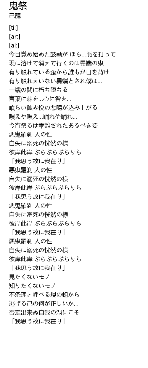 | [00:47.47] | 現に溶けて消えて行くのは異端の鬼 |