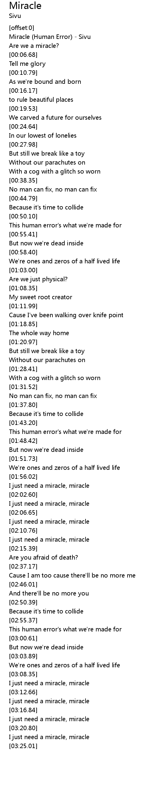 [00:00.55] Miracle (Human Error) - Sivu